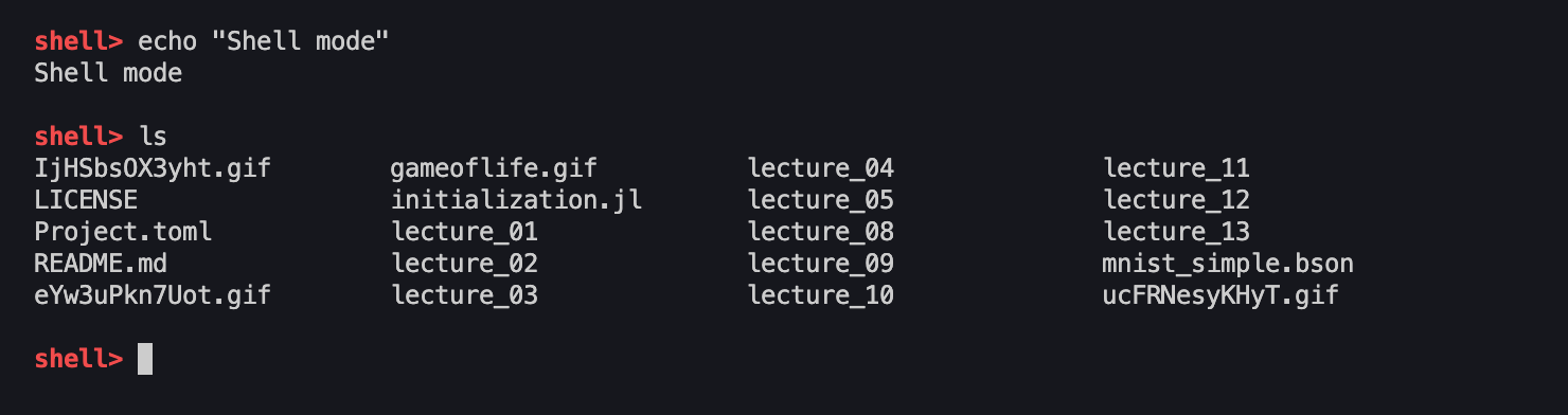 Using basic commands (keys), we can easily switch from standard Julia REPL into other modes
