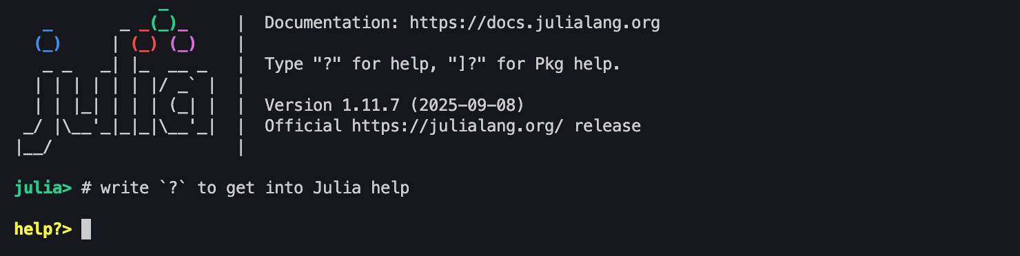 In help, you can use any function or type to search for its documentation. For example, we can see documentation of the function sum