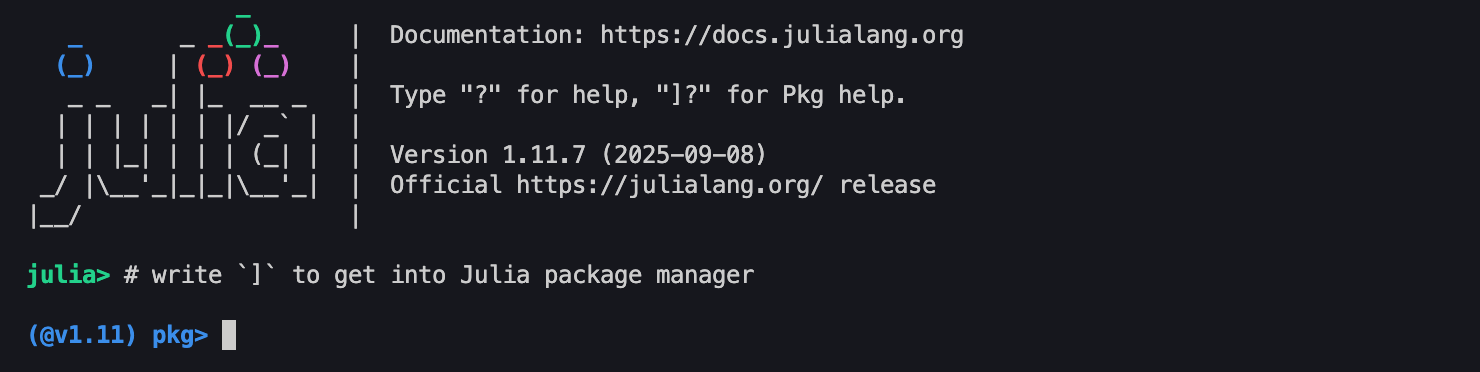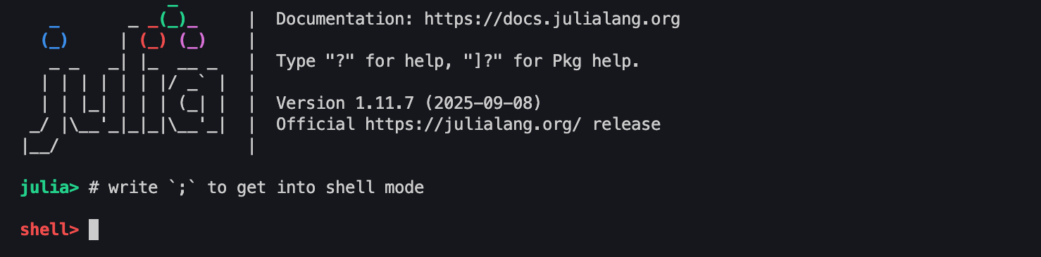 Using basic commands (keys), we can easily switch from standard Julia REPL into other modes