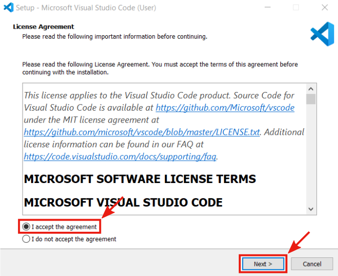 There is no need to change the default settings. On the installer's last window, select the Launch Visual Studio Code option and press the Finish button.