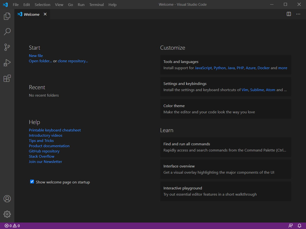 If the installation was successful, the VS Code should open in a new window.