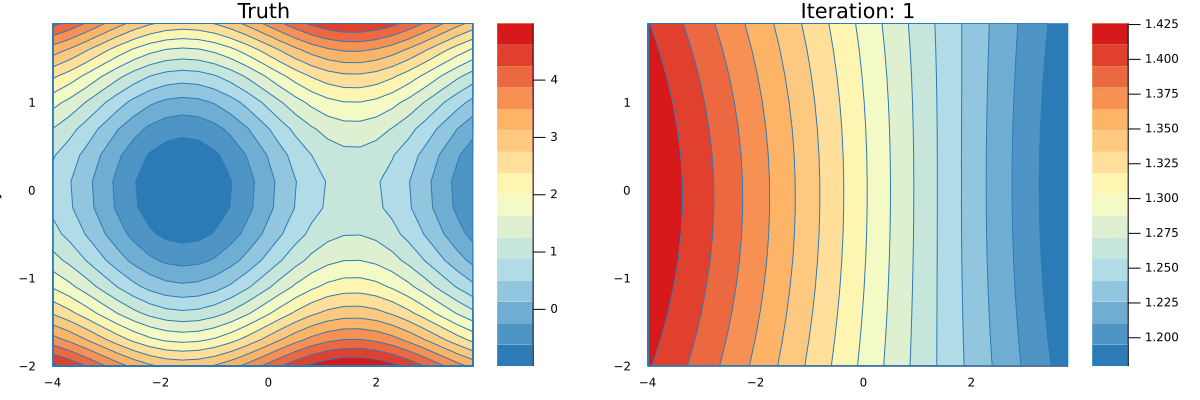 endYou can see a full implementation of our tracing based AD here and a simple implementation of a Neural Network that can learn an approximation to the function g here. Running the latter script will produce an animation that shows how the network is learning.