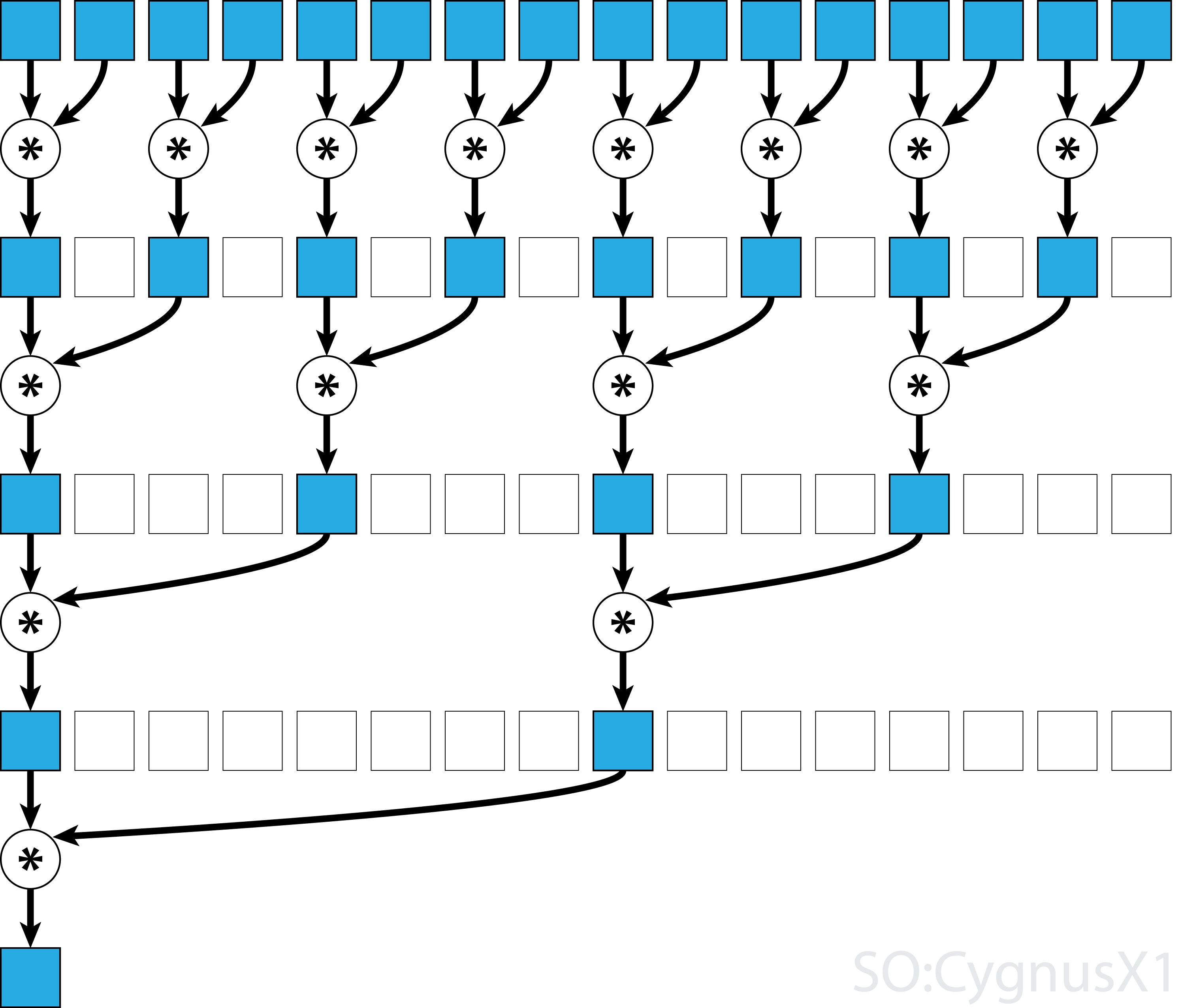 sum(x)Recall that each block is executed on a separate SM, each equipped with the local memory. So far, we have been doing all computations in the global memory, which is slow. So how about to copy everything to the local memory and then perform the reduction. This would also have the benefit of not modifying the original arrays.
