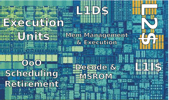 It contains blocks allowing to execute instructions in parallel, out of order, speculatively just to maximally utilize all computational units. Notable functionalities / blocks are